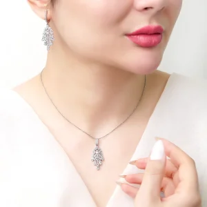 ست نقره طرح برگ با نگین مارکیز لوکس 101593