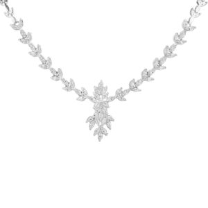 گردنی نقره طرح برگ با نگین مارکیز 1001593