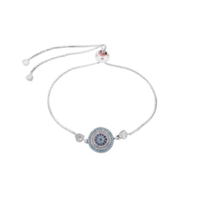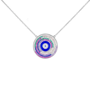 گردنبند نقرهای با طراحی چشم نظر و سنگهای رنگی10704