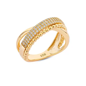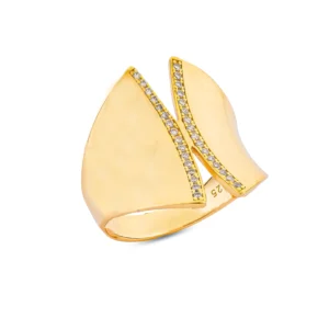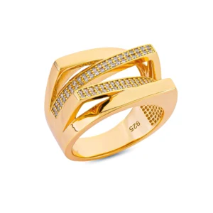 انگشتر نقره زنانه طلایی طرح نامتقارن نگیندار عیار 925