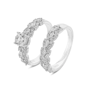 ست انگشتر و پشت انگشتر نقره طرح خوشهای درخشان عیار 925