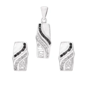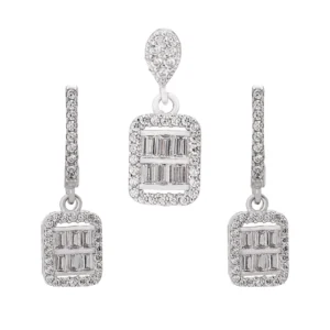 نیمست نقره زنانه طرح مستطیلی با نگین باگت و میکروست 10150071