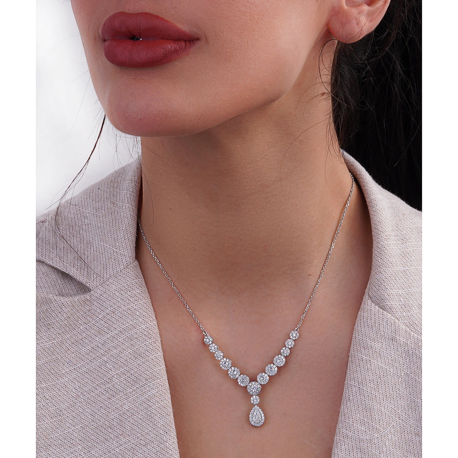 گردنبند نقرهای با نگینهای زیرکونیا و طراحی لوکس، مناسب برای مجالس رسمی و هدیههای خاص.