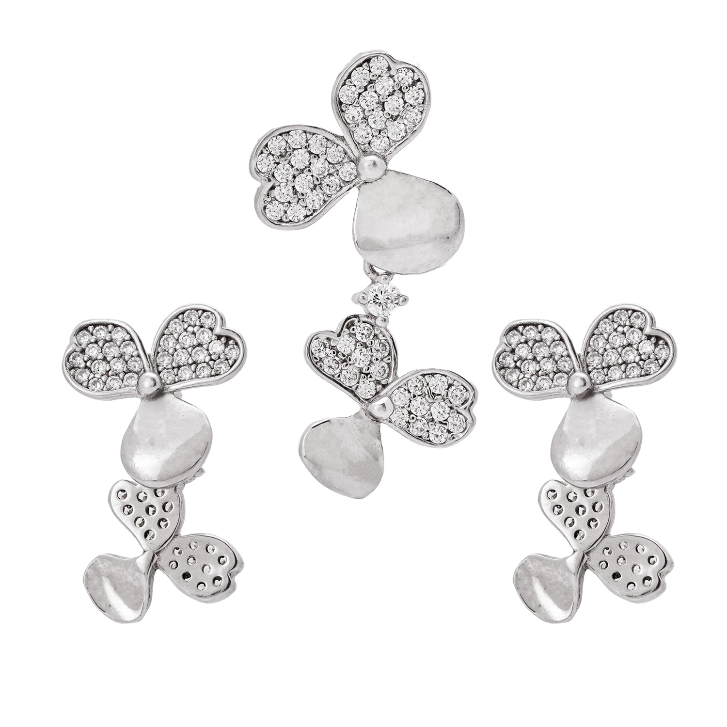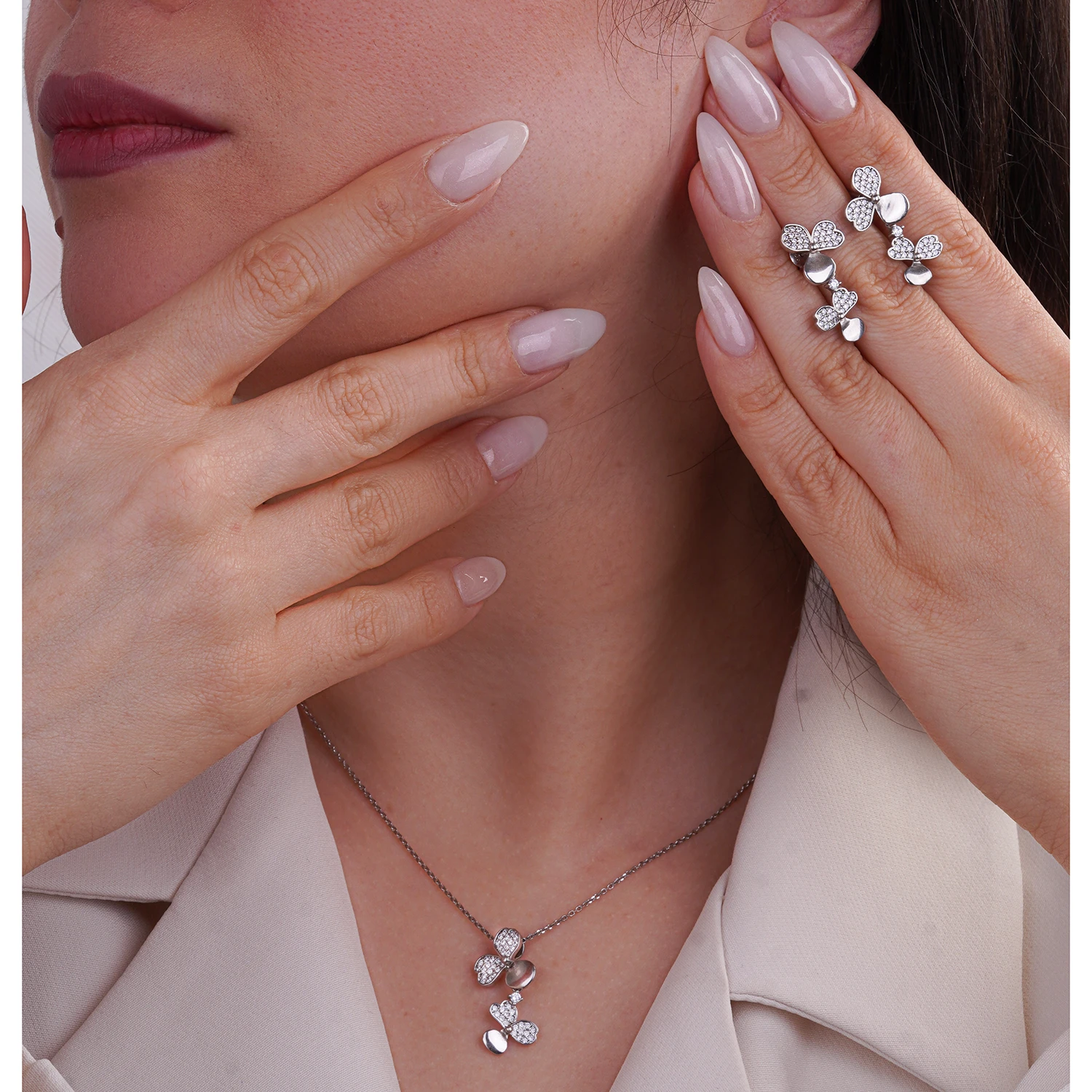 نیمست نقره زنانه با طراحی منحصر به فرد و نگینهای میکروست، مناسب برای مجالس رسمی و هدیه خاص