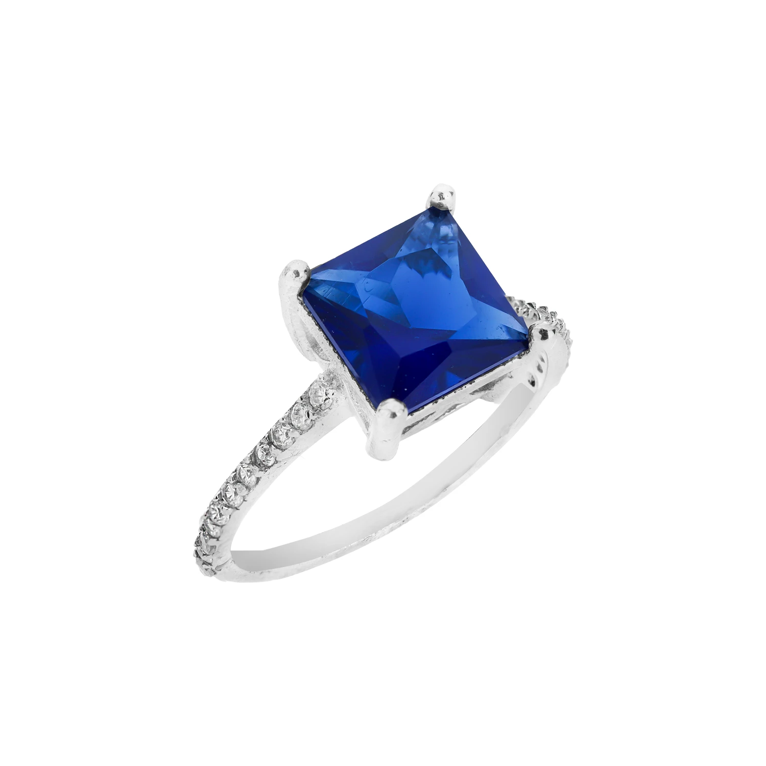 انگشتر نقره 925 زنانه با سنگ سفایر آبی و نگینهای میکروست، شیک و مناسب مجالس رسمی و هدیههای خاص.