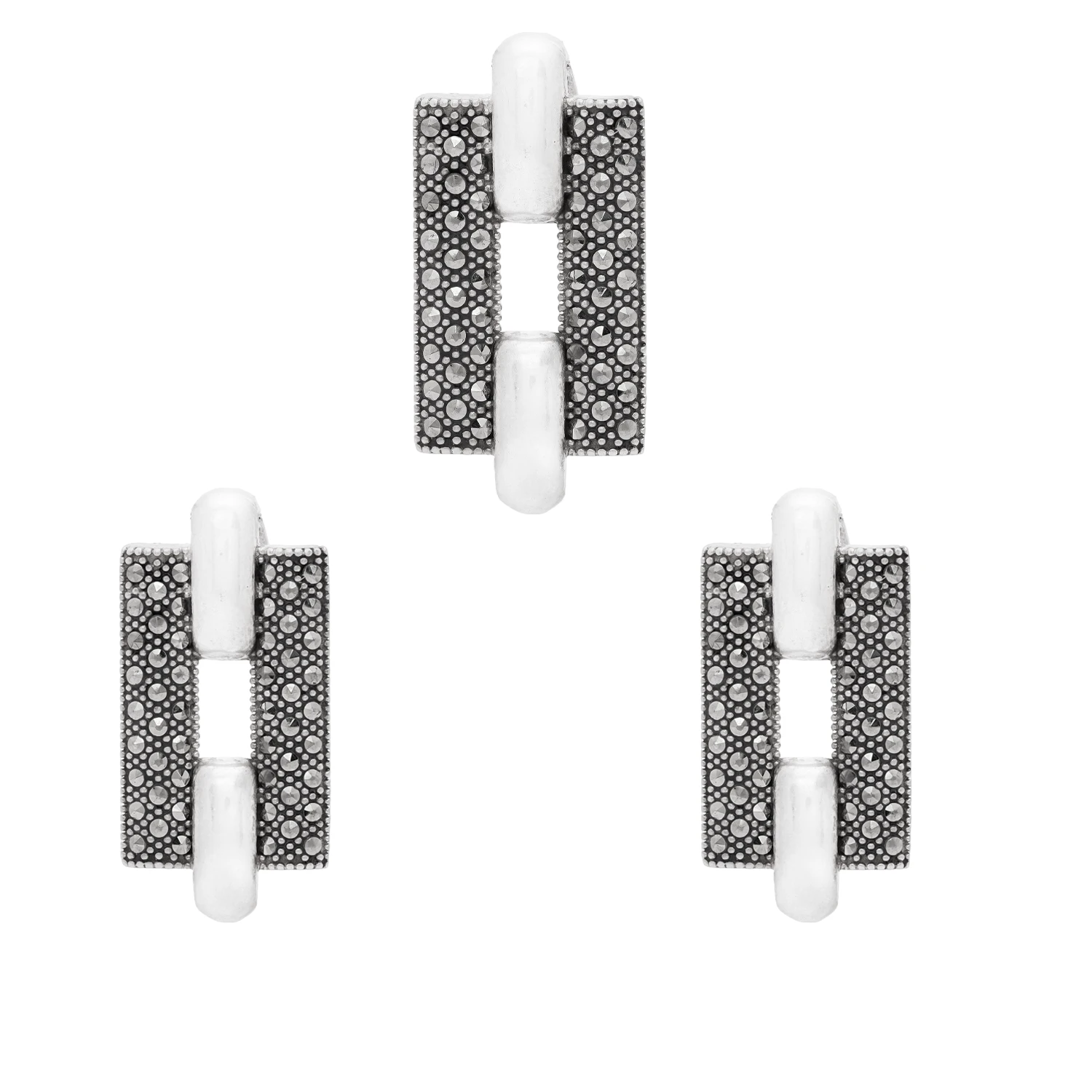 نیمست نقره زنانه با نگین مارکازیت و طراحی آنتیک، انتخابی اصیل و خاص برای استایلهای کلاسیک از شمیم سیلور.
