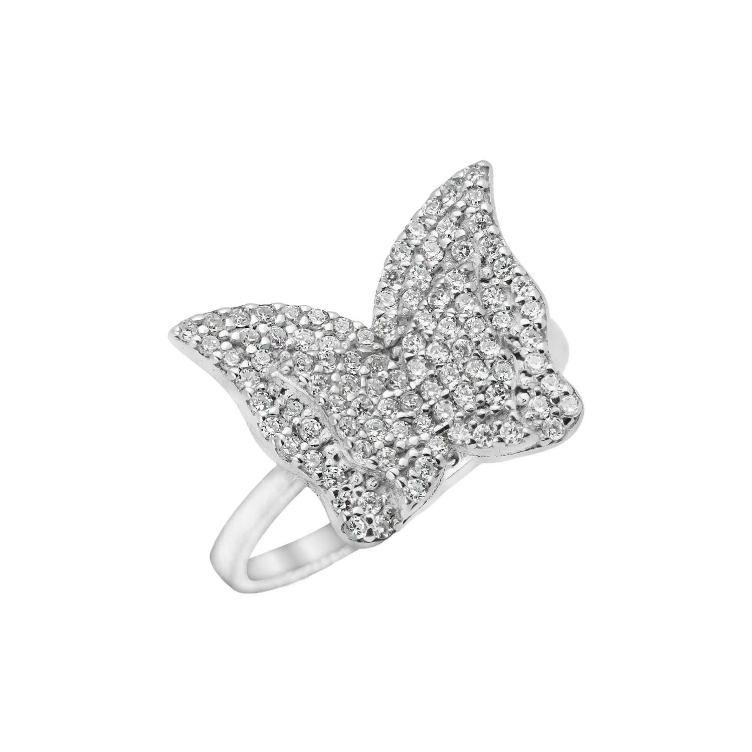 انگشتر نقره زنانه با طراحی پروانه و نگینهای زیرکونیا سفید. مناسب هدیه و استایل شیک روزمره. خرید آنلاین از شمیم سیلور