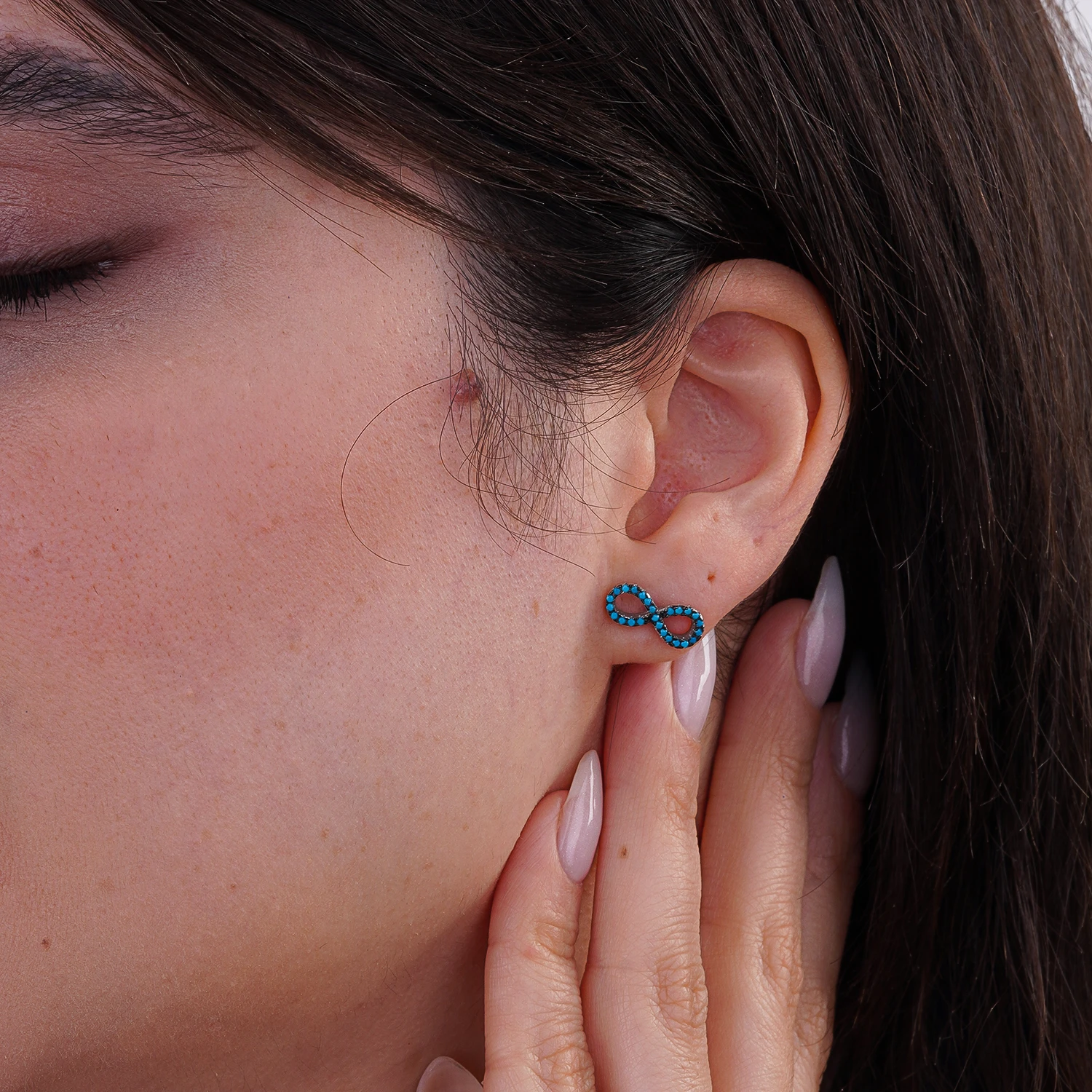گوشواره نقره طرح بینهایت با نگینهای آبی، وزن 1.81 گرم، مناسب استایل روزمره و هدیه. خرید از شمیم سیلور.