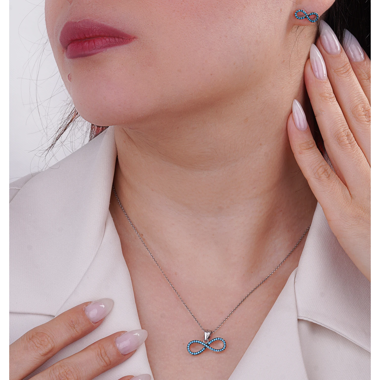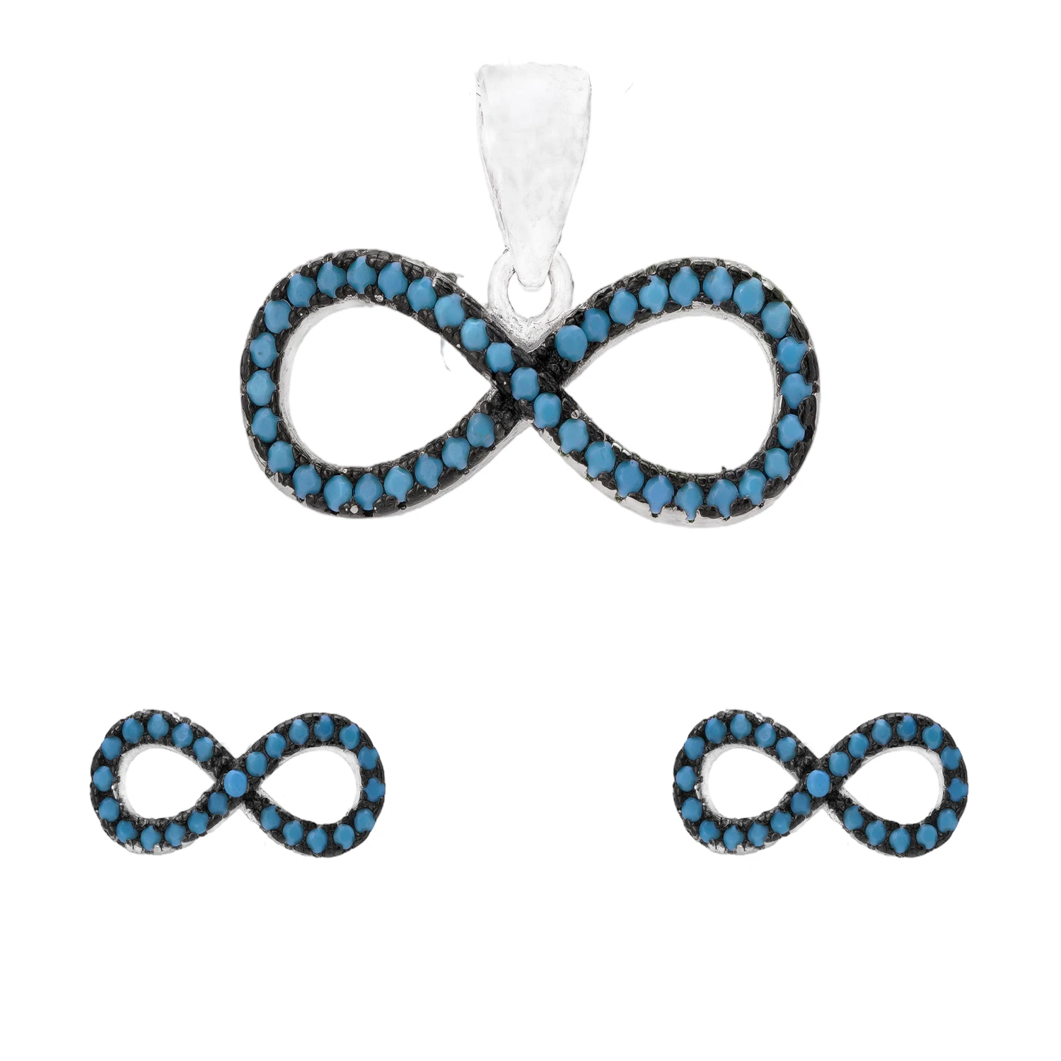 نیم ست نقره بینهایت نگین فیروزهای شمیم سیلور 10150039