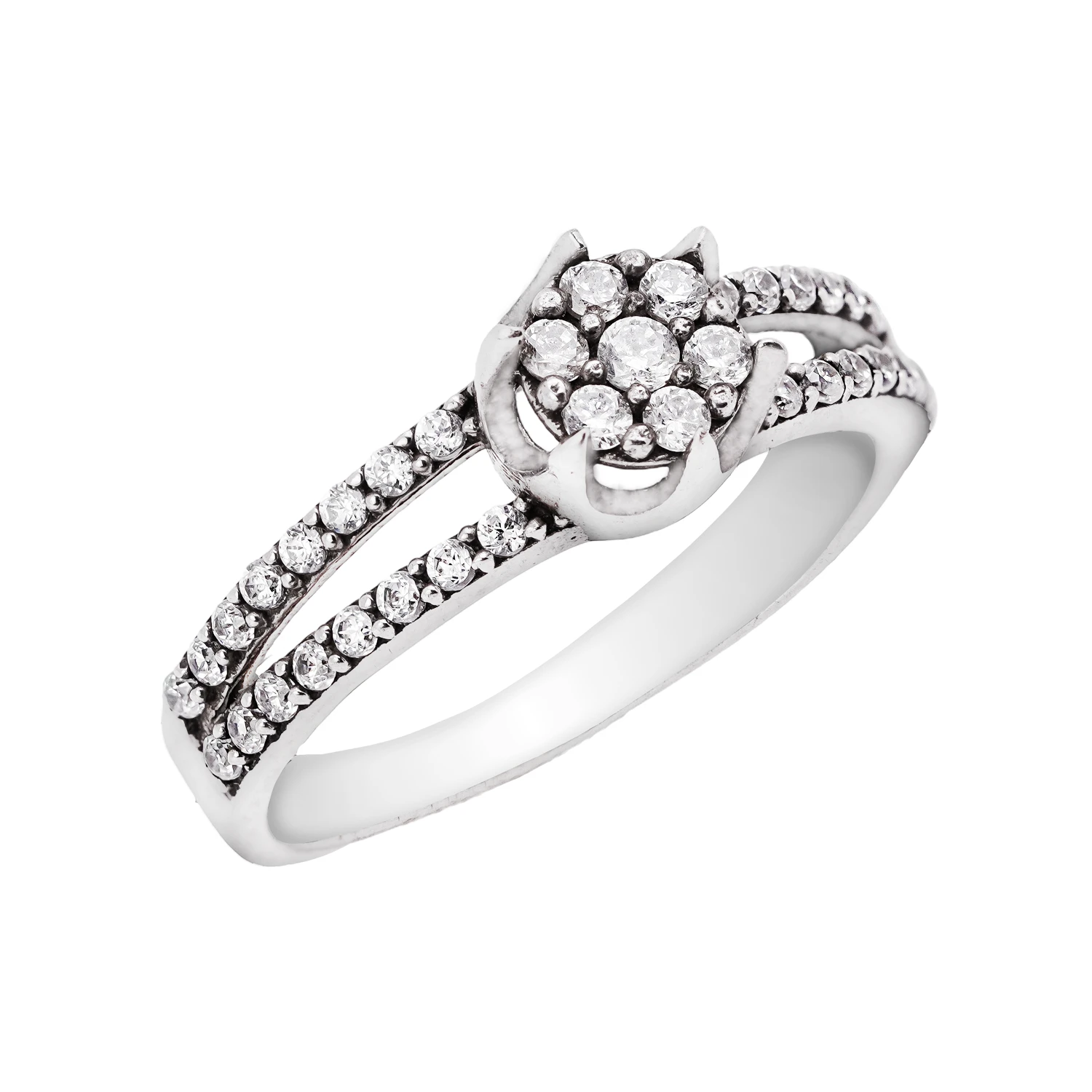 انگشتر نقره زنانه با طراحی گل لوتوس و نگینهای زیرکونیا سفید. مناسب هدیه و استایل شیک روزمره. خرید آنلاین از شمیم سیلور