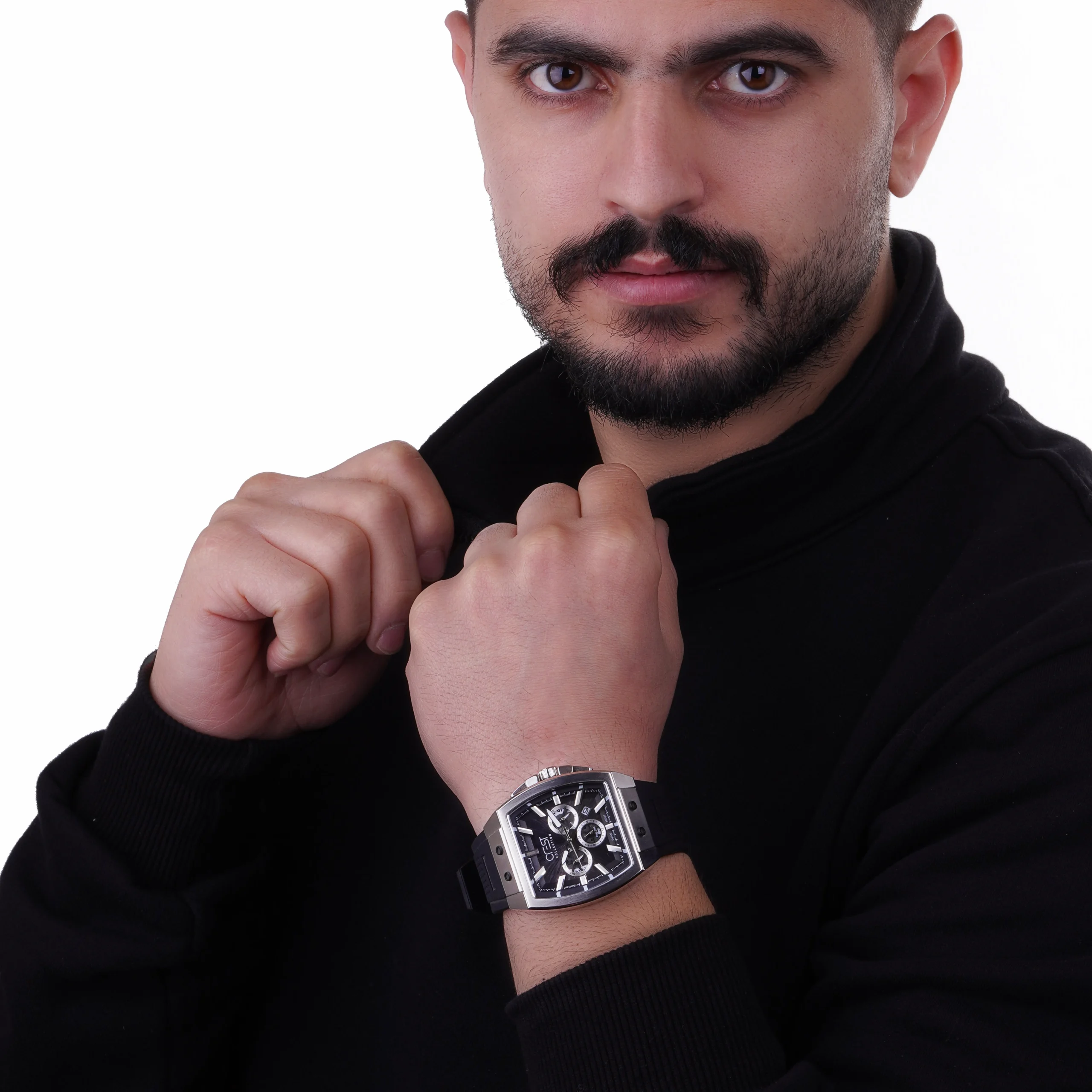 این ساعت مردانه با طراحی مدرن و بدنه نقرهای با روکش براق، برای آقایان با سلیقه خاص طراحی شده است. صفحه ساعت به رنگ مشکی با خطوط برجسته و سه موتور کرنوگراف که در کنار هم قرار دارند، این ساعت را به یک انتخاب ایدهآل برای استفاده روزمره و جلسات کاری تبدیل کرده است. طراحی جذاب و ساختار مقاوم آن، همراه با بند سیلیکونی راحت و مقاوم، ساعت را برای هر موقعیتی مناسب میسازد.