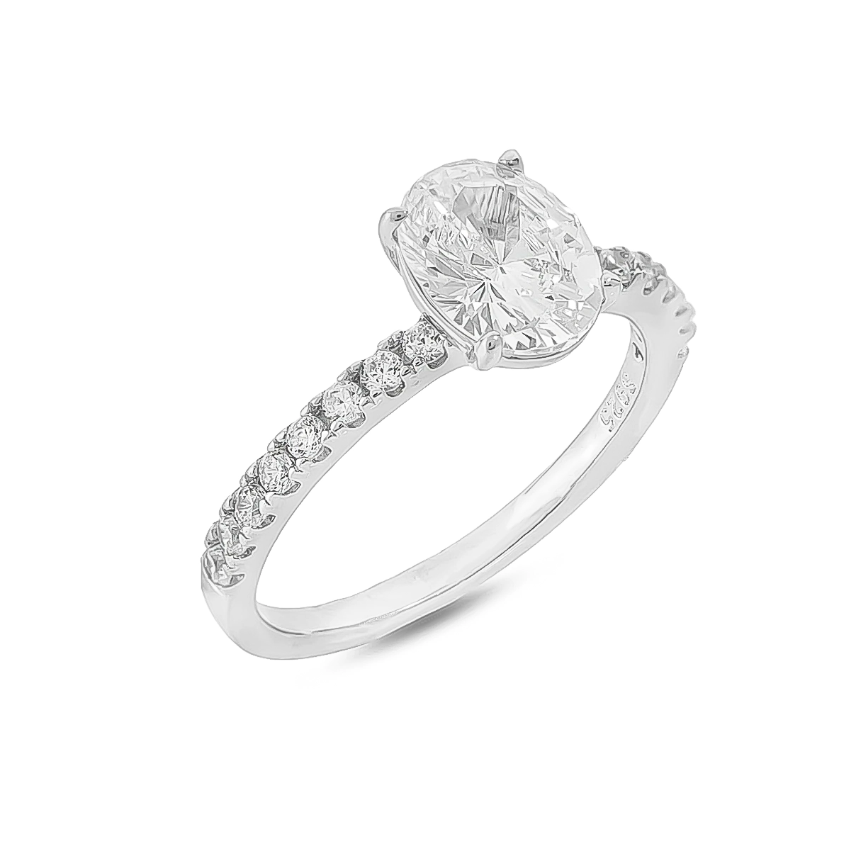 انگشتر نقره زنانه با نگین بیضی زیرکنیا سفید و رکاب نگیندار از نقره 925، مناسب هدیه نامزدی، نشون عروس و مناسبتهای عاشقانه.