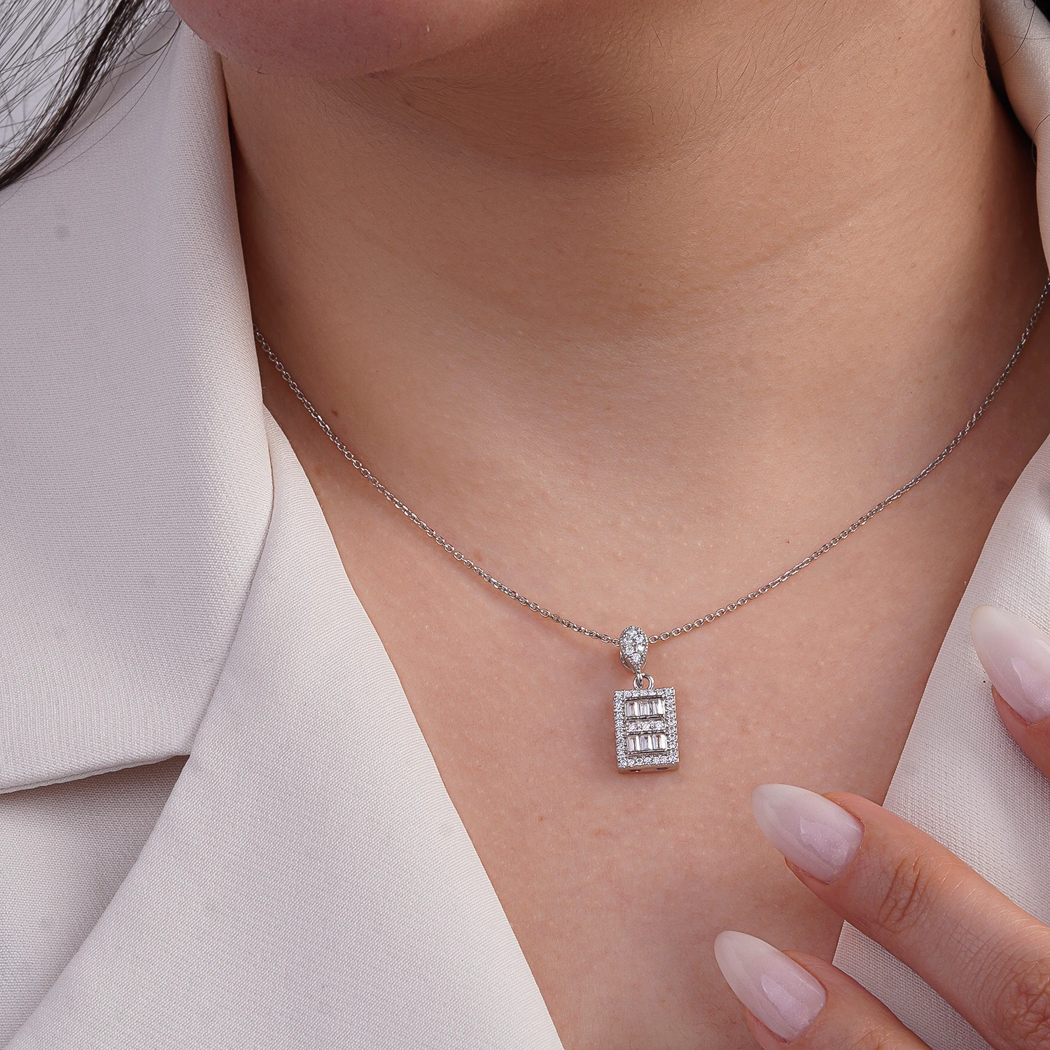 پلاک نقره زنانه طرح مستطیل با نگین باگت و میکروست 1000150071