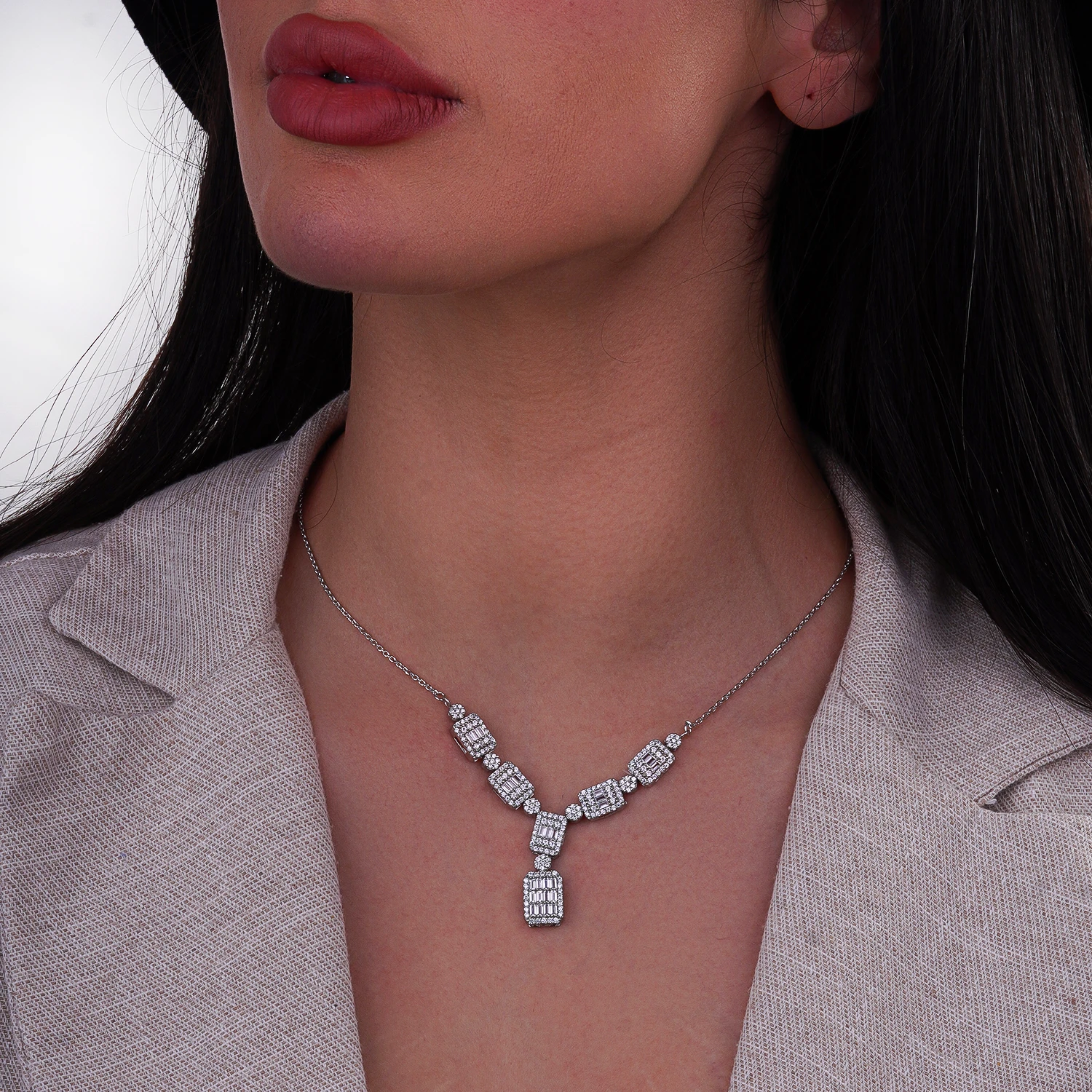 گردنی نقره 925 با طراحی شیک و نگینهای زیرکونیای باگت؛ مناسب مراسم رسمی و هدیههای خاص