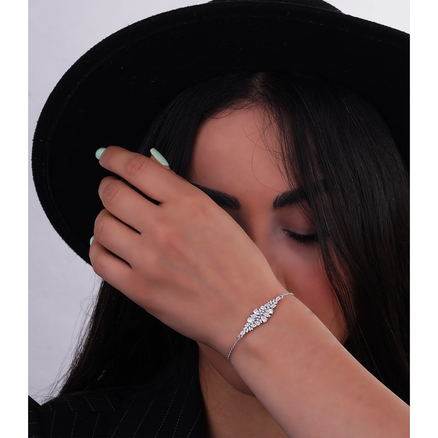 دستبند نقره زنانه مدل 100015119 با نگینهای زیرکونیا و طراحی ظریف و مجلسی. مناسب هدیه و استایل رسمی. از شمیم سیلو
