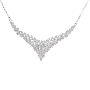 این دستبند نقره لوکس با کد 10015122 جلوهای از ظرافت و دقت در طراحی جواهرات زنانه است. بخش مرکزی آن با ترکیب نگینهای زیرکونیای ریز و نگینهای کشیدهی باگت، طرحی خوشفرم و چشمنواز ایجاد کرده که یادآور طراحیهای گلبرگگونه و کلاسیک اروپایی است.