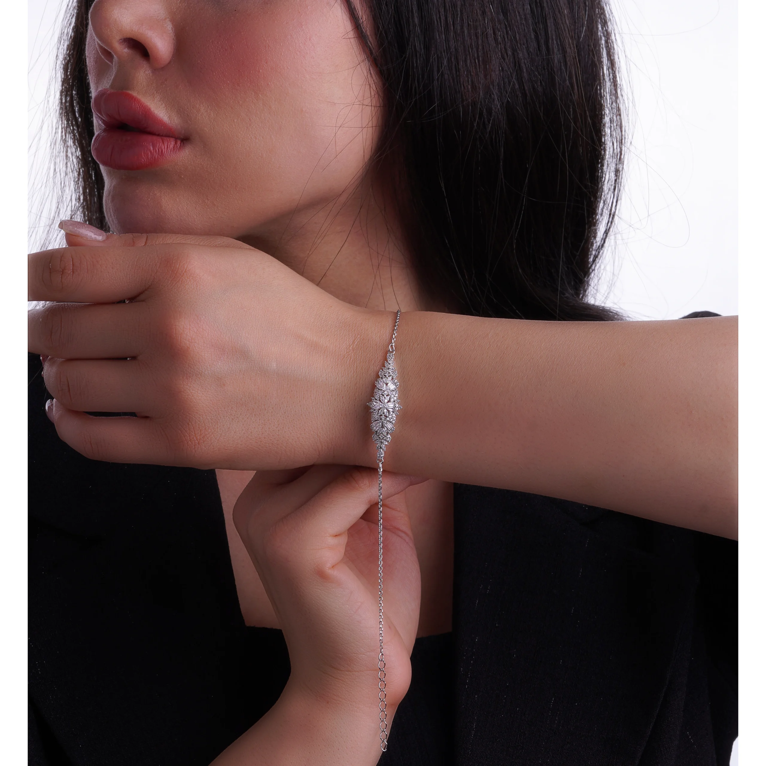 دستبند نقره زنانه طرح گلبرگ با مرکز باگت شمیم سیلور 10001525