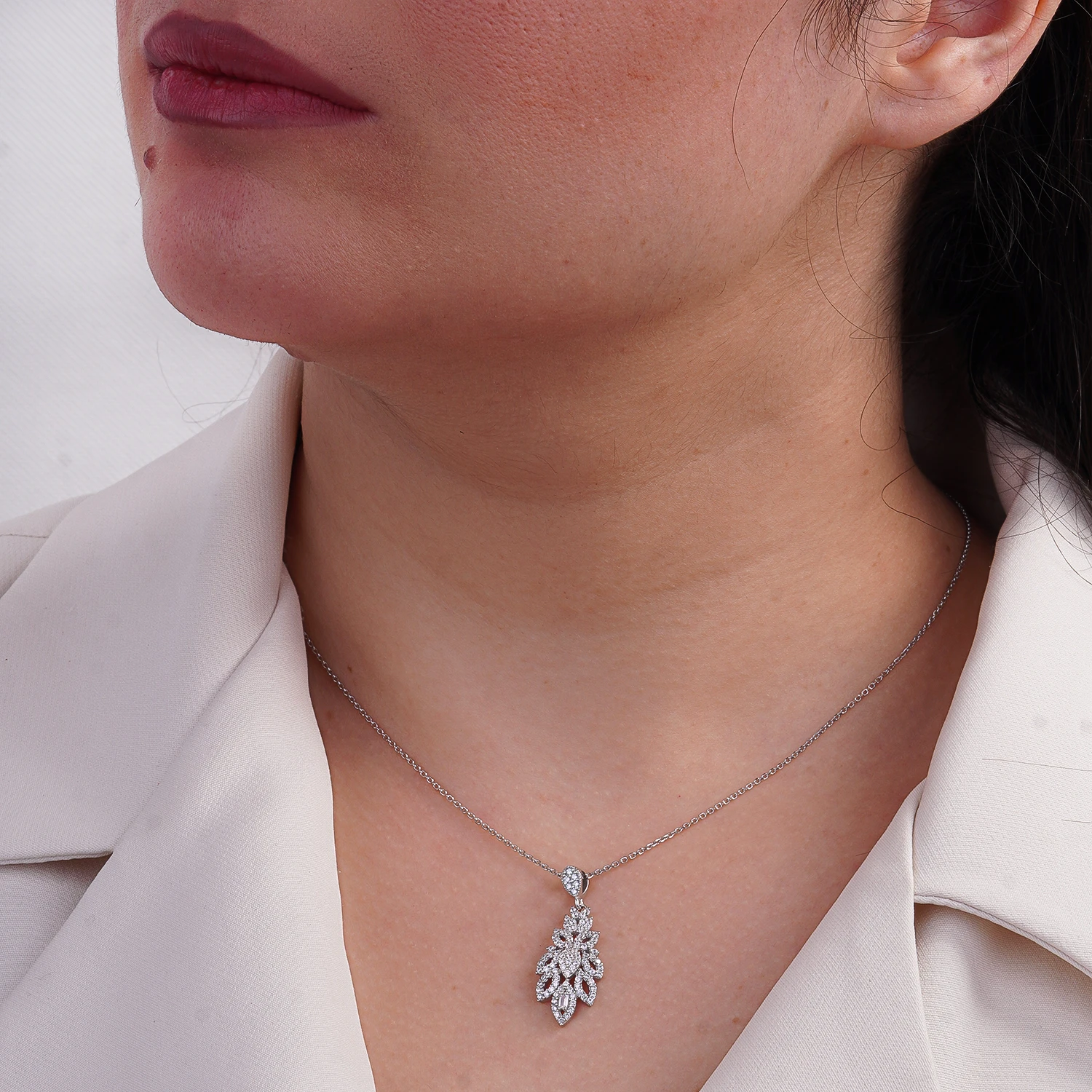پلاک نقره زنانه: طراحی شاخهای با ترکیب نگینهای میکروست و باگت درخشان