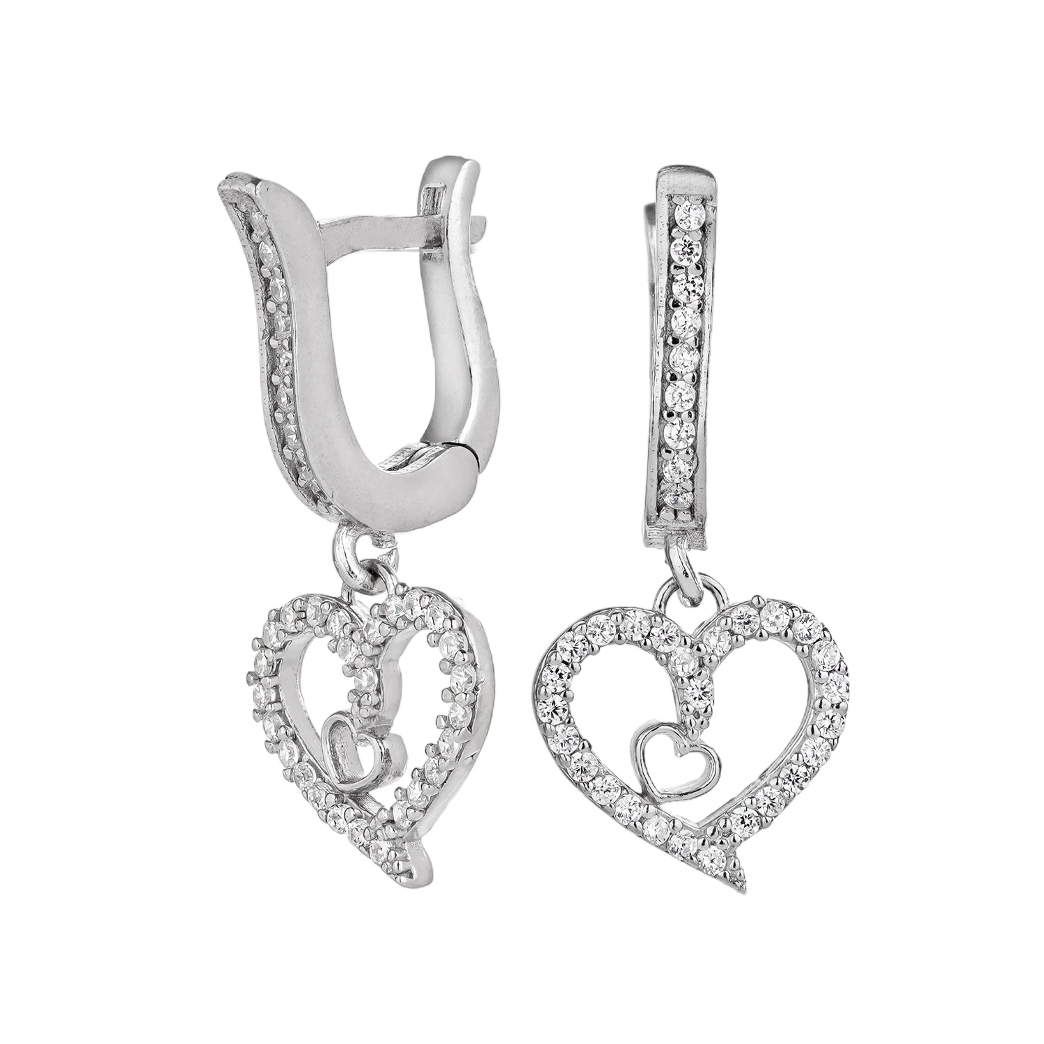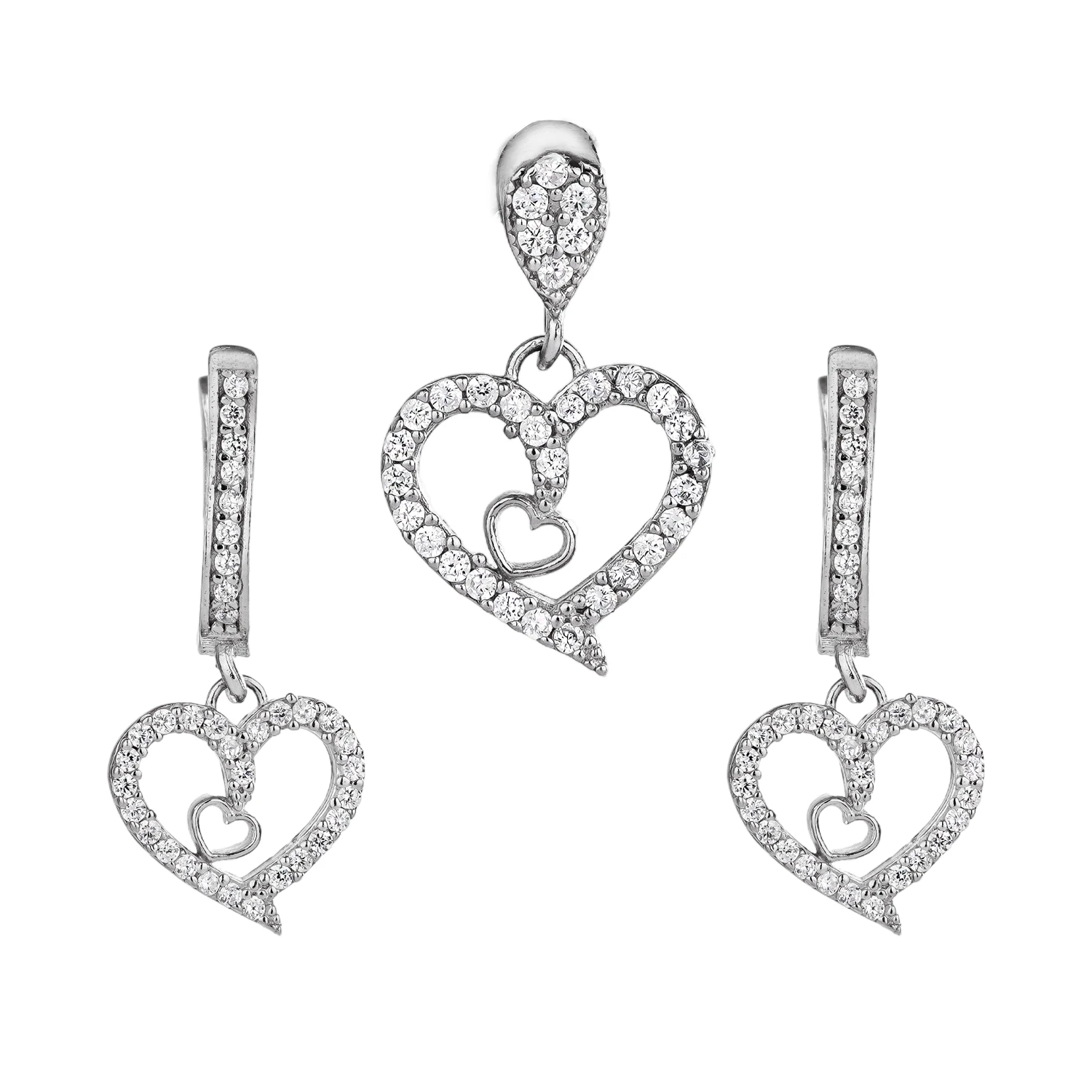 نیمست نقره زنانه طرح قلب دوبل با نگین میکروست 10150069