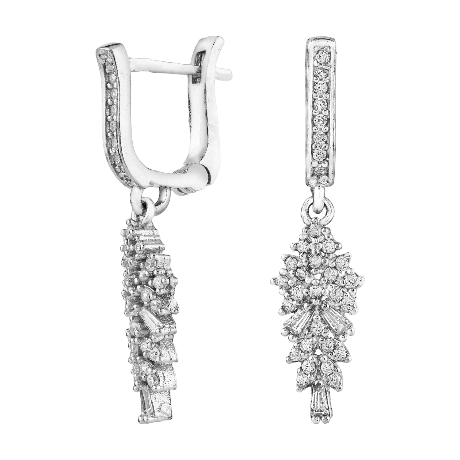 گوشواره نقره 925 زنانه با نگینهای زیرکونیا و طراحی آویز مجلسی. سبک لوکس و مناسب مهمانی و جشن. خرید از شمیم سیلور