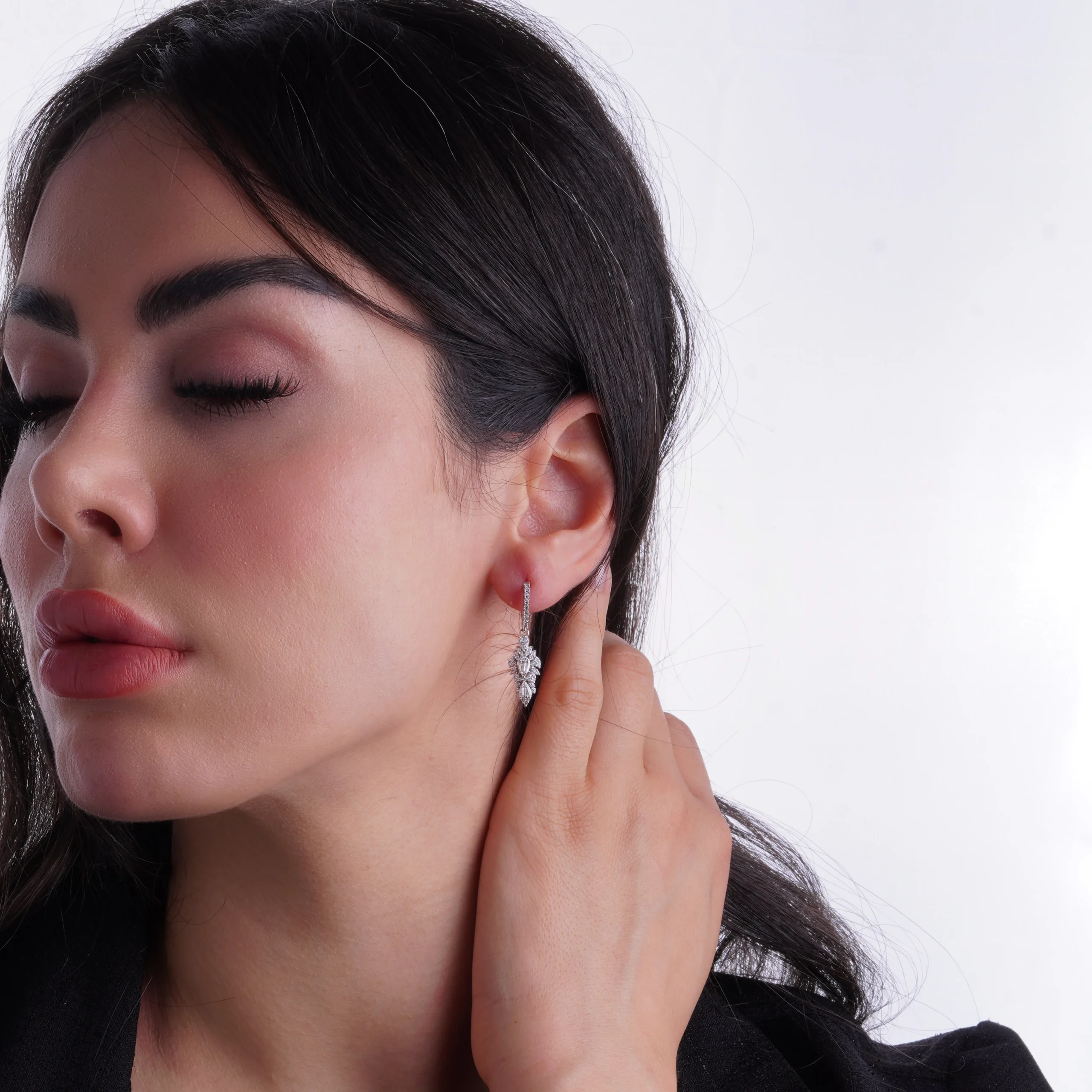 گوشواره نقره زنانه شمیم سیلور مدل 10015125 با طراحی شاخهای ـ برگگون و چینش منظم نگینهای میکروست، تلفیقی از ظرافت و درخشش چشمنواز است.