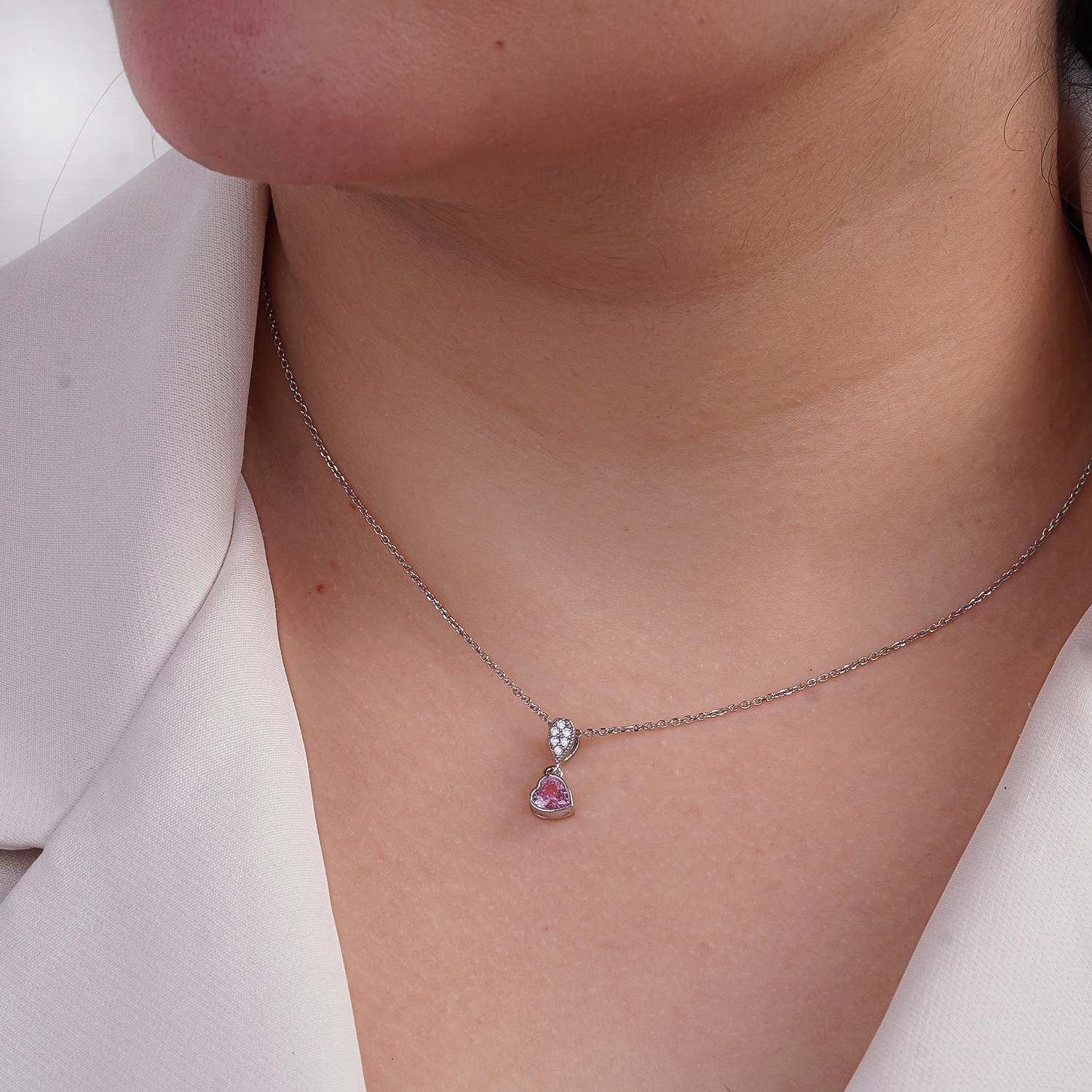 پلاک نقره قلب صورتی با نگینهای زیرکونیا و طراحی ظریف. مناسب هدیه و استفاده روزمره. خرید آنلاین از شمیم سیلور.