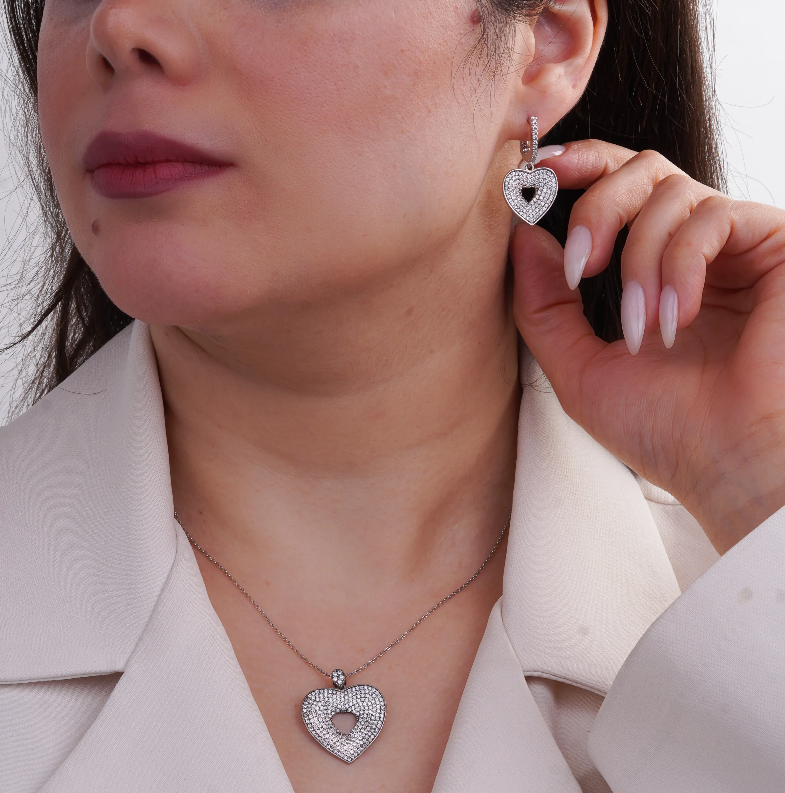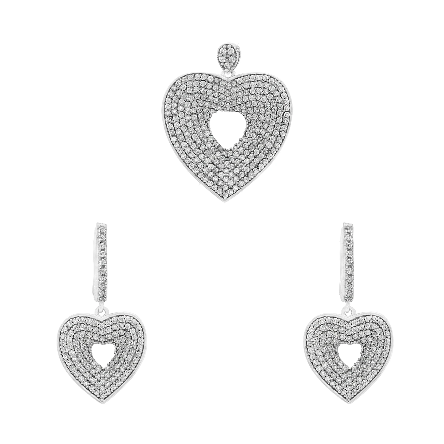 نیم ست نقره طرح قلب نگیندار شمیم سیلور 10150040