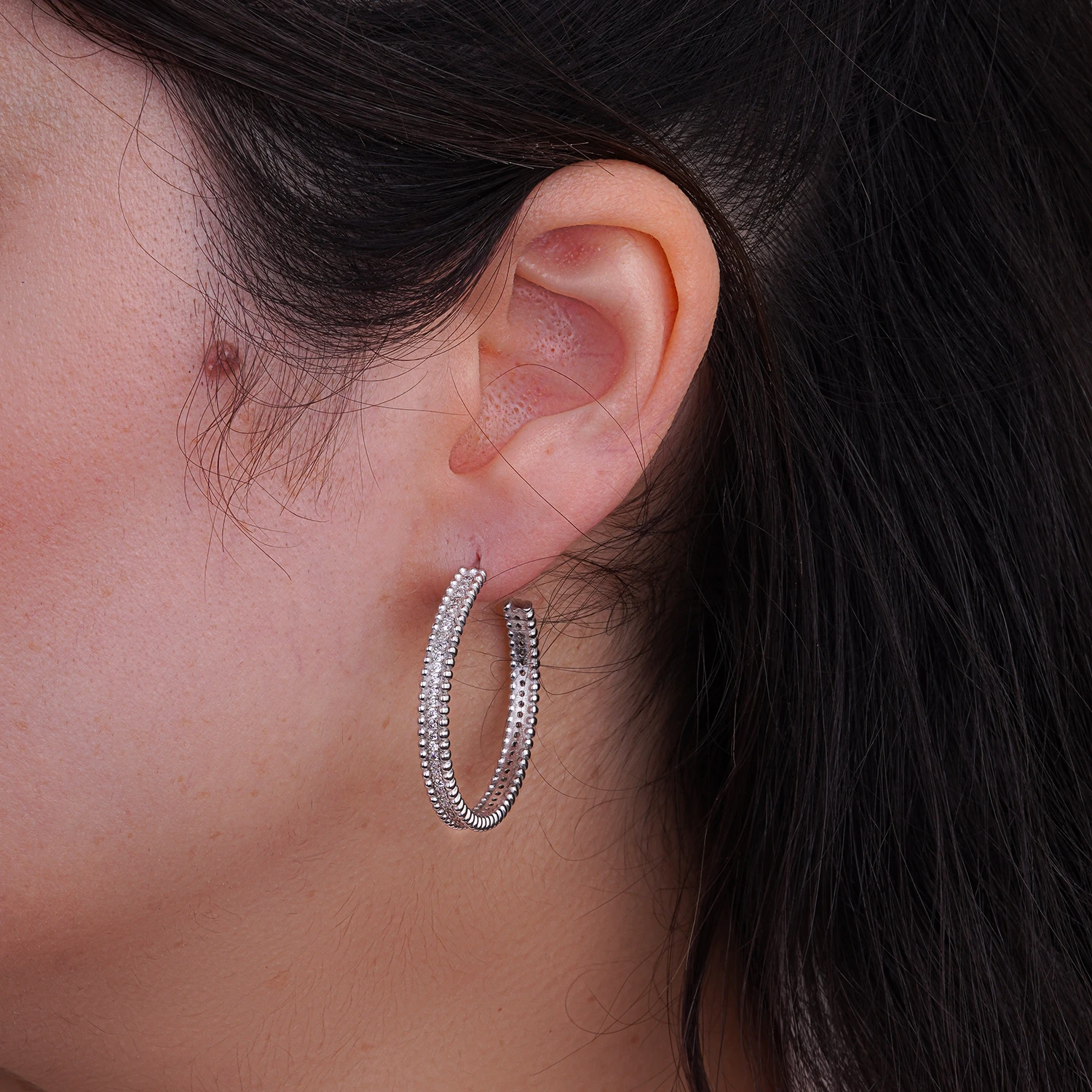 گوشواره حلقهای نقرهای عیار 925، با طراحی ساده و براق، مناسب برای استایل روزمره و هدیههای خاص.