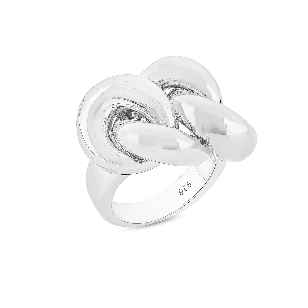 انگشتر نقره زنانه بدون نگین با طراحی گرهای حجمی، ساختهشده از نقره 925، مناسب استایل مدرن، مینیمال و هدیه خاص.