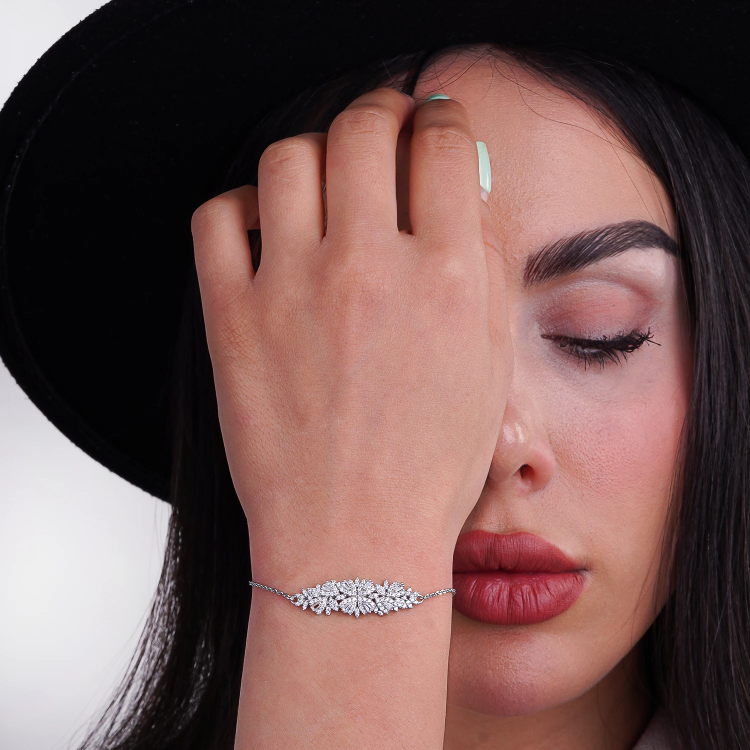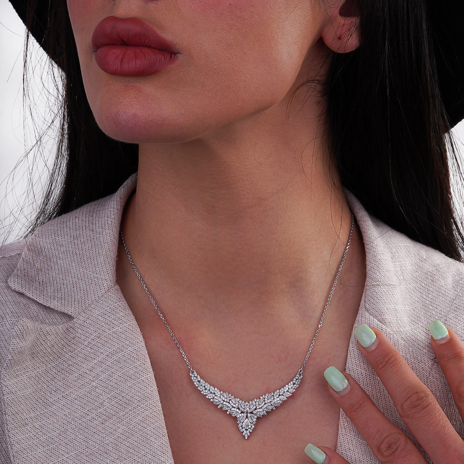 سرویس نقره زنانه طرح برگ با نگینهای میکروست و باگت – درخشش خاص و سلطنتی