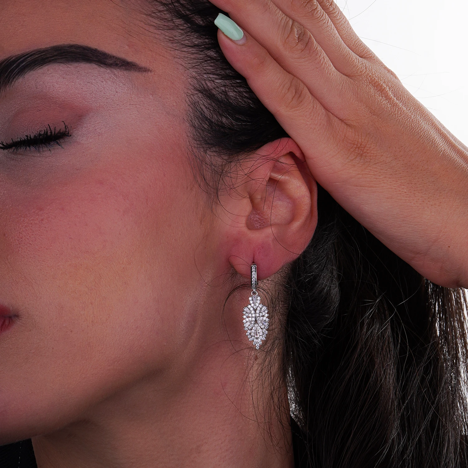 سرویس نقره زنانه طرح برگ با نگینهای میکروست و باگت؛ ترکیب ظرافت و درخشش الماسی برای استایلهای مجلسی و عروسگونه.