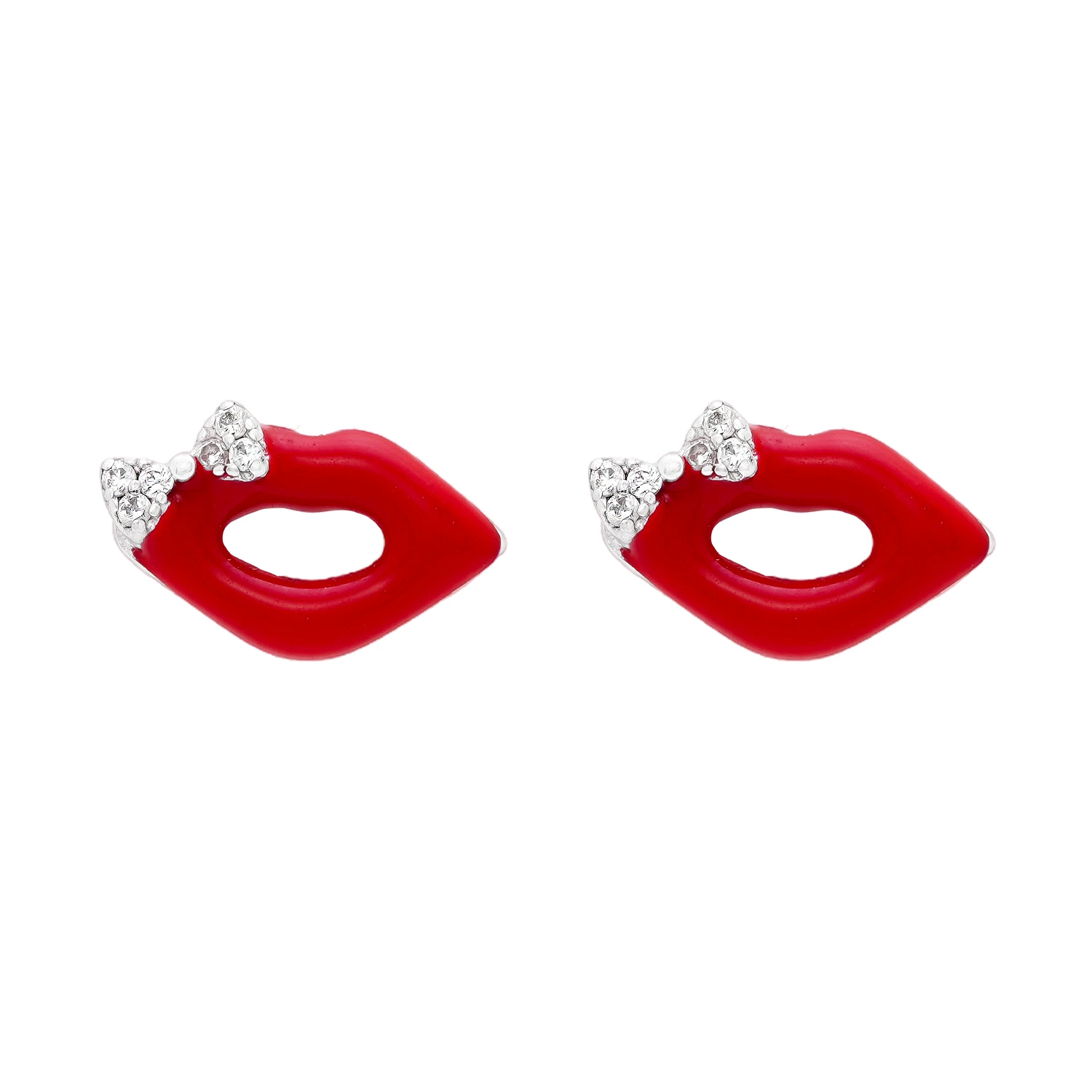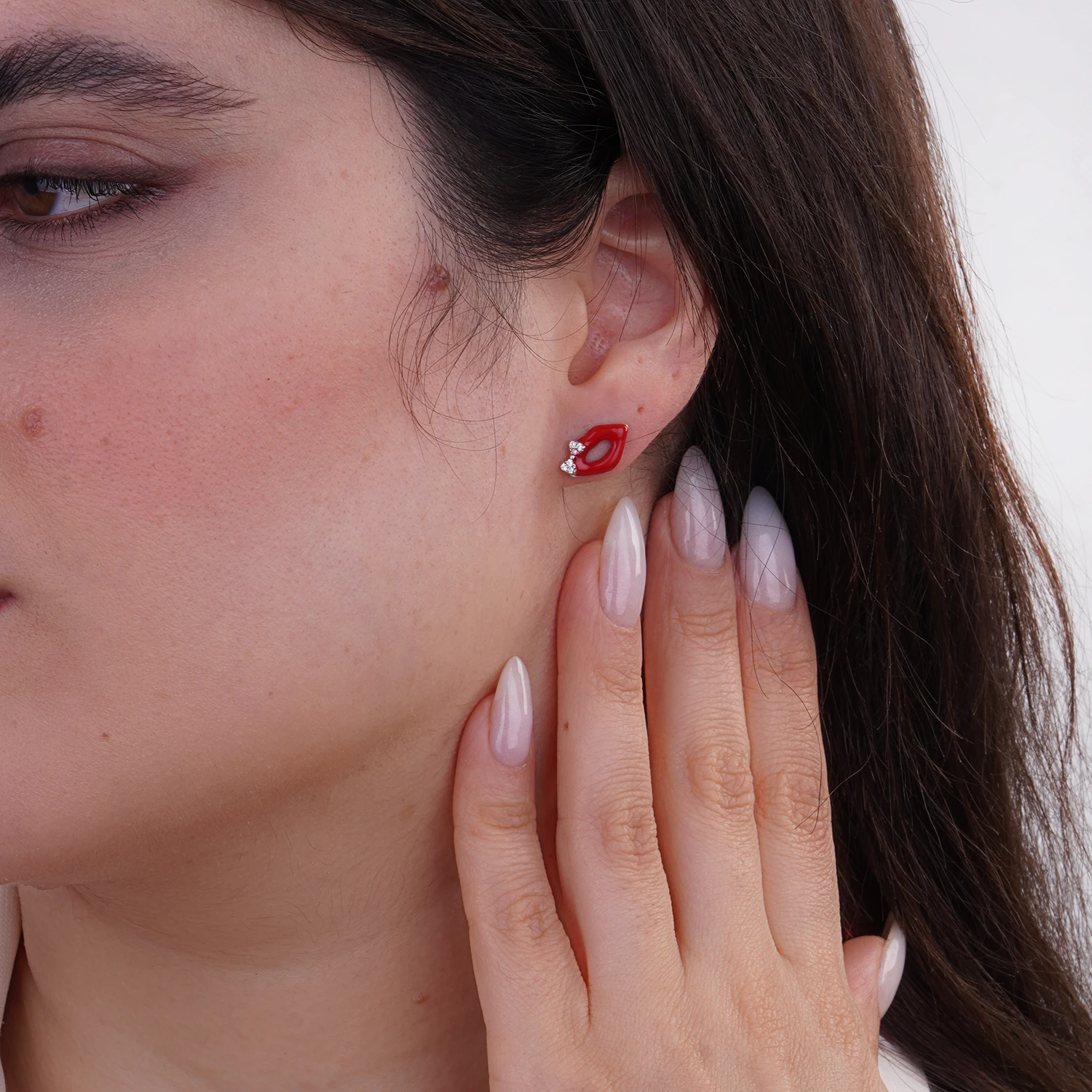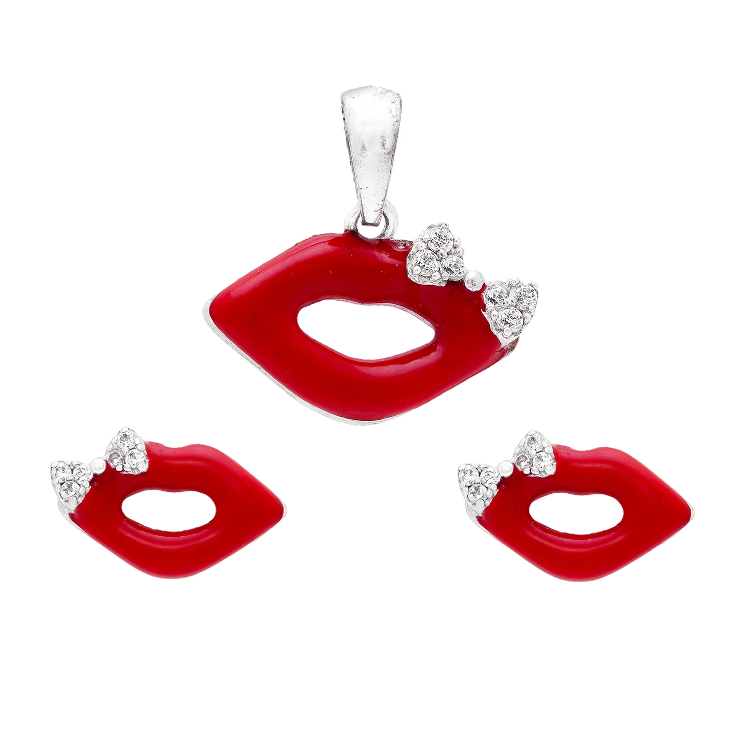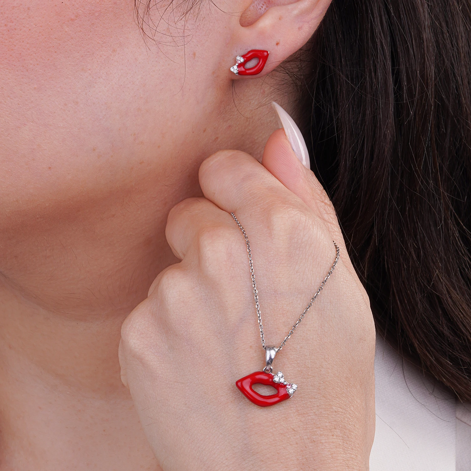 نیمست نقره زنانه طرح لب با لعاب قرمز و نگینهای اتمی درخشان، طراحی خاص و مدرن از شميم سيلور برای استایل مجلسی و هدیهای ماندگار.