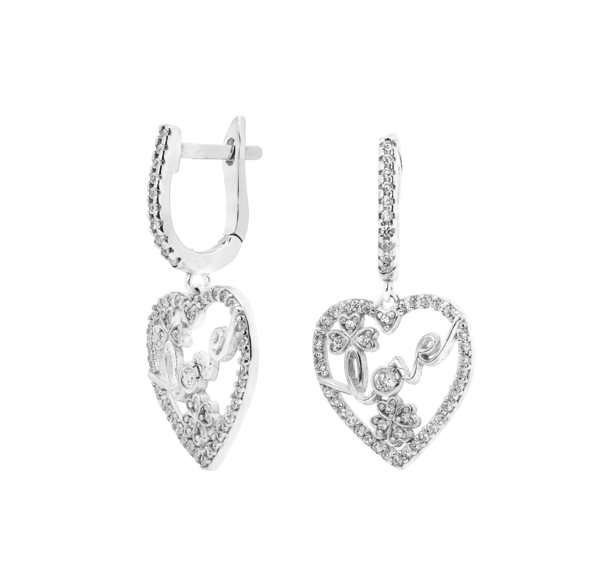 گوشواره نقره طرح قلب با نوشته LOVE و نگینهای زیرکونیا؛ انتخابی زیبا و احساسی برای هدیهای خاص. خرید گوشواره 925 کد 100150047 از شمیم سیلور.