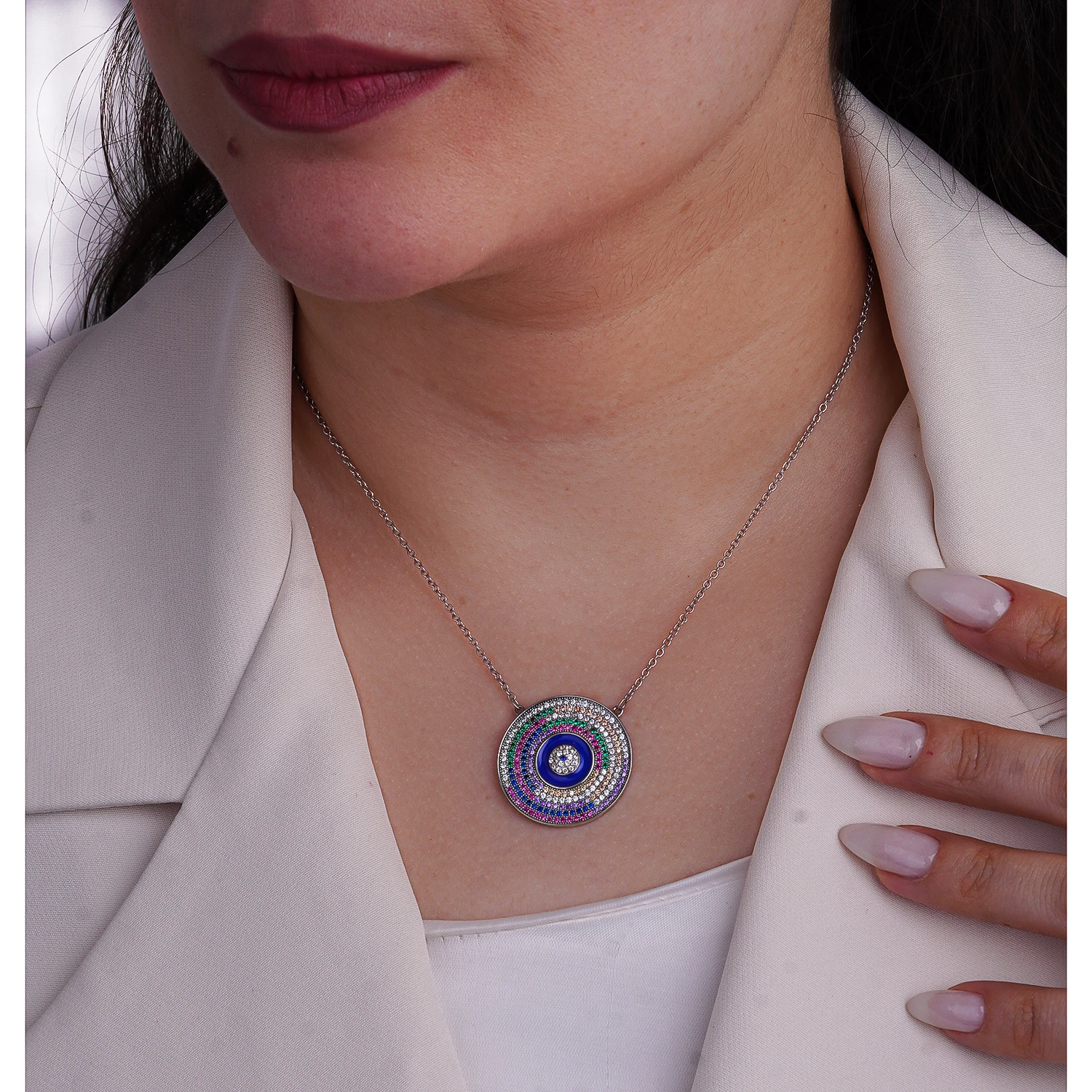 گردنبند نقرهای با طراحی چشم نظر و سنگهای رنگی10704