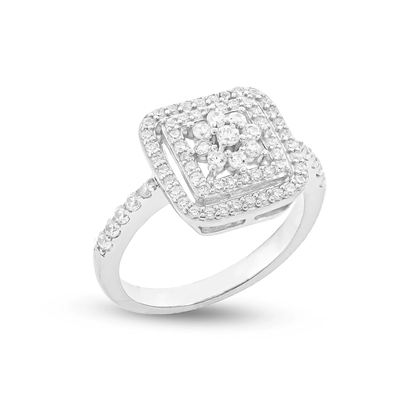 انگشتر نقره زنانه طرح تاج مربعی عیار 925