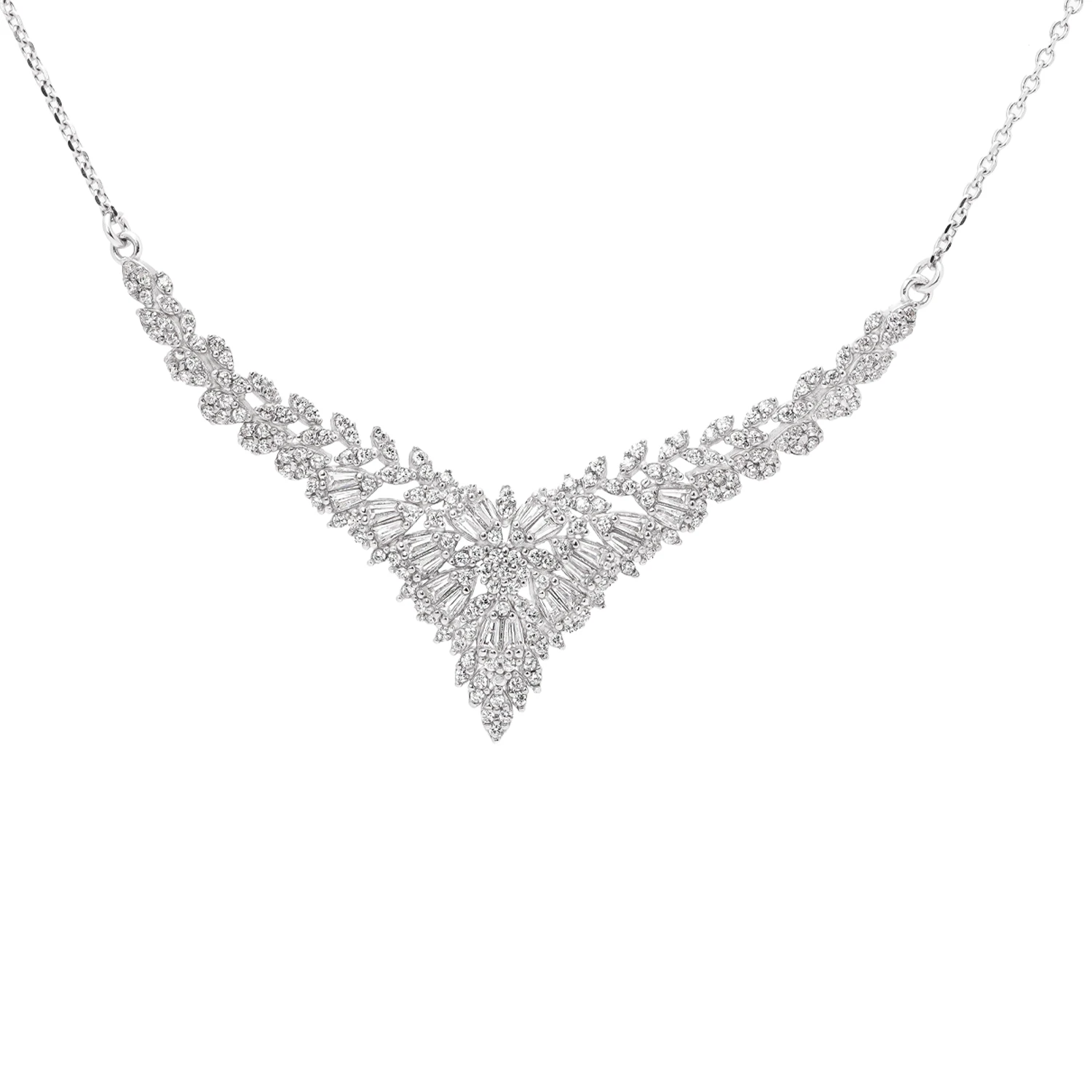 گردنبند با فرم V شکلی خود بهزیبایی خط گردن را برجسته میکند؛ گوشوارههای ظریف اما درخشان، تکمیلکننده این هماهنگیاند و دستبندی که با ظرافتی خیرهکننده طراحی شده، مجموعه را به یک سرویس تمامعیار رسمی تبدیل میکند.