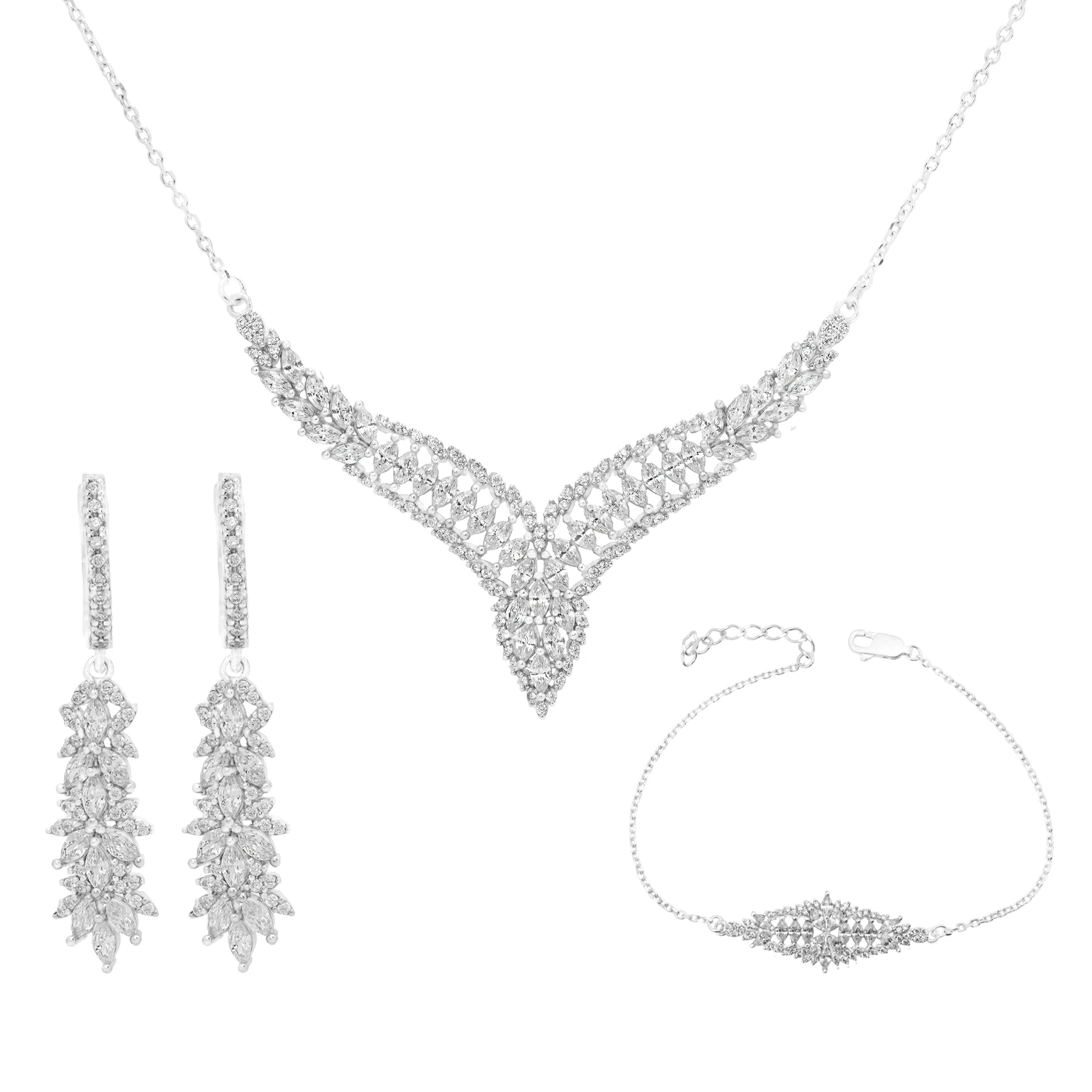 سرویس نقره زنانه کد 10159 با نگینهای زیرکونیا و طراحی فاخر؛ مناسب عروسی و مهمانی. خرید از شمیم سیلور باضمانت اصالت