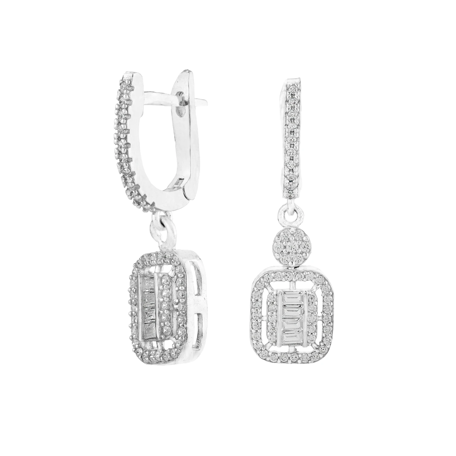 گوشواره نقره طرح مربع باگت شمیمسیلور 10015100
