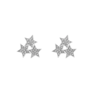 ست نقره طرح سهستاره با طراحی ظریف، درخشان و کاملاً هماهنگ شامل یک پلاک و یک جفت گوشواره است. هر سه قطعه دارای شکل ستارههای بههمپیوسته هستند و سطح آنها با نگینهای ریز اتمی سفید به روش میکروست تزئین شده؛ که جلوهای بسیار براق و چشمگیر ایجاد میکند.