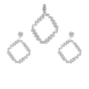 نیمست نقره زنانه طرح مستطیلی با نگین باگت و میکروست 10150071